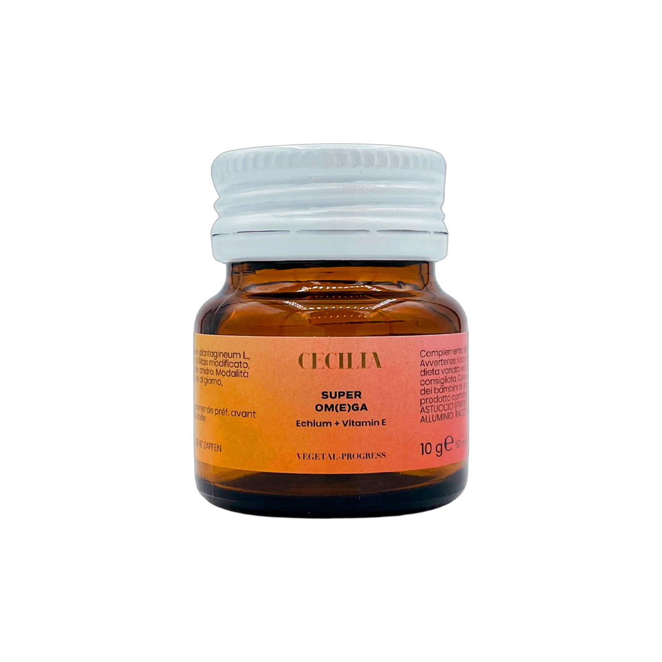 Super Om(e)ga est un complément alimentaire formulé à base d'Huile de Graines d’Echium (Vipérine à Feuilles de Plantain) riche en acides gras polyinsaturés d'origine végétale, dont des omégas 3 et 6, et de vitamine E, qui ne peuvent pas être synthétisés par l’organisme et doivent ainsi être introduits par l’alimentation pour éviter toutes carences nutritionnelles.