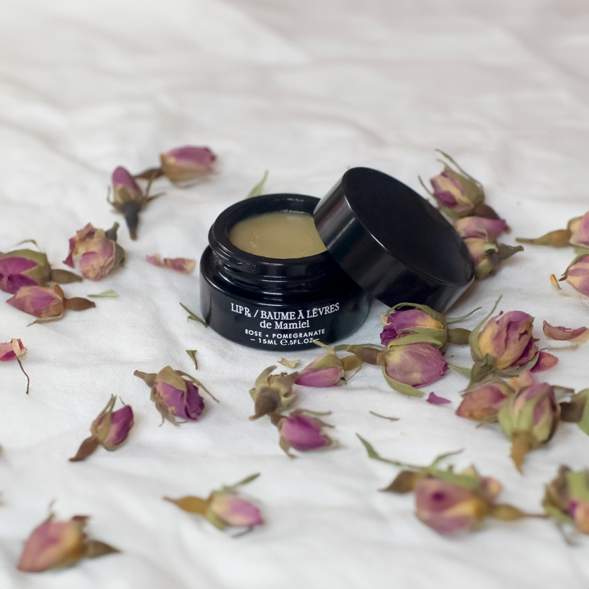 - Huile Essentielle de Rose de Damas & Fleur de Grenadier : adoucissent et repulpent visiblement les lèvres.
