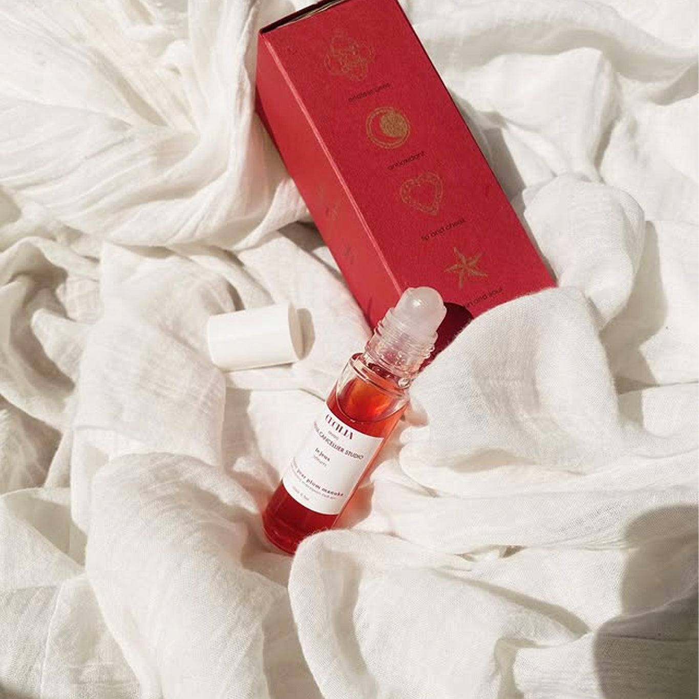 - Huile Végétale de Prune : riche en antioxydants, en vitamine E, et en acides oléique, linoléique, palmitique, stéarique & palmitoléique, possède des vertus anti-inflammatoires, raffermit, régénère, illumine et nourrit la peau, calme et apaise les rougeurs, les irritations et les inflammations cutanées.